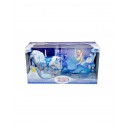 La confezione contiene la bambola principessa dei ghiacci con la sua splendida carrozza e il suo amato cavallo bianco dalla criniera bianca e azzurra, portala alle più importanti serate di gala ed il cavallo camminerà davvero!